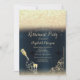 Elegant glitter wine glass and bottle on a gold glitter bokeh and navy blue background.