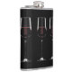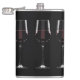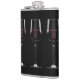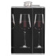 Wine glasses with red wine on black hip flask