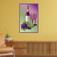 Jewel toned bottle of wine with two elegant wine glasses. Green and purple grape clusters attractively displayed in the foreground.