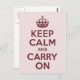 Wine red "Keep Calm and Carry On" design on a pale pink that coordinates.
