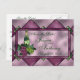 Stunningly beautiful digitally created stained glass design in lavender and purples and accented by a wine bottle and grapes makes for aunique elegant Save the Date postcard. All text front and back is fully customisable. Matching postage available!