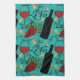 Bottoms up! This great wine lover's motif kitchen towel has a grapes, wine glass, corks, and bottles pattern with your choice of background colour!