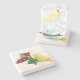 Stone coaster shown with a wine glass and grapes print design.