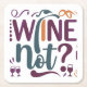 A modern and stylish design featuring the text "Wine Not?" in a bold, geometric font, with colourful shapes and lines intertwining around it, representing the sophistication and enjoyment of wine.