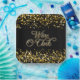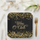 Wine O'Clock Gold Sparkle Square Paper Plate