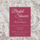 Simple style, bridal shower invitation that features a trendy, wine red colour background along with the future bride's name and party event time and location, contact, etc., printed in white, stylised lettering. Personalise your invitation by replacing text with your own bridal shower information. Select your invitation paper style and quantity.