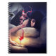 This notebook has a cartoon picture of a woman spilling her wine on it.