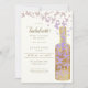 A simple, modern, elegant and chic bachelorette party weekend invitation template with a butterfly theme, featuring a wine bottle layered with gold foil (this is a digital effect, not real foil) and lilac butterflies. A lovely choice for a bachelorette weekend of wine tasting in Napa Valley or any other winery.