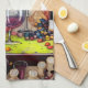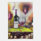 Colourful AI generated digital art kitchen towels - "The Wine Tasting" design features a variety of wine glasses and red wine bottle. Perfect kitchen decor for wine lovers!