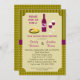 Modern and eye catching bridal shower invitation. Ideal for a sophisticated and fun couple that loves wine and gourmet food . Great to gather friends and host a wine tasting event. Features a wine bottle, wine glasses and a cheese plate on a purple and earth tones green colour palette. The wine label has two hearts as a symbol of the love shared by the bride and groom. Add your own wording. Polka dots pattern on the back.