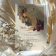 Add a touch of vintage elegance to your wedding with this wine-themed Art Nouveau menu card. The front features a serene figure in a flowing golden dress, reclining amidst lush grapevines and rich clusters of deep purple grapes, holding a glass of wine. The soft cream backdrop and intricate floral motifs exude sophistication, while the menu on the back is framed with delicate golden swirls and accents. Perfect for vineyard weddings, rustic celebrations, or vintage-inspired themes, this card combines the charm of fine art with the warmth of a wine lover’s dream.