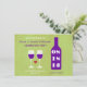 This modern card is ideal to announce a wedding to be celebrate it in a vineyard, or a wedding with a wine theme. It’s also great for wine lovers. Features a wine bottle and two wine glasses on a textured background and a red heart. The date is written on the bottle. Add your own wording.