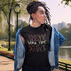 Kiwis wear all black as the t shirt is with Green lettering to match the environment and yellow for joy and purple thistle to match my hair.