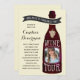 This rustic bachelorette party invitation for a winery tour features a wine bottle with a dark red watercolor texture, faux glitter grapes, a chalkboard banner, pretty calligraphy, and a photo of the bride-to-be. Additional text can be added to the back of the card if desired.