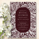 Modern leaf and flower pattern with a stylish oval framing your party information in wine and white.