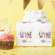 Wine decorative text or word of dark red or burgundy colour and dark red splatters and blots imitating the wine stains. Prints and gifts for fun and good mood. Horizontal or landscape orientated products and souvenirs.