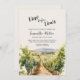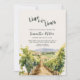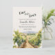 Vino before Wine Winery Bridal Shower invitation features a watercolor winery and mountains design. There's room on the back for the bride and groom's initials on a wine bucket.