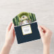 A beautiful all-in-one sophisticated, upmarket outdoor winery watercolor invitation featuring a long wooden rectangular table with a crisp white tablecloth set below an arch filled with grape vines. A single lantern appears hanging from the middle of the arch and the table is flanked by stone pillars and poplar trees and a hint of vineyards in the distance. White editable text appears below the graphic set on a dark blue background which has majestic stone pillars and a poplar tree on either side forming an elegant frame to the wording. A tear of response strip at the bottom in white and blue has a single bunch of red grapes on it and black and white editable text templates for your custom wording. This ai design is inspired by the wine farms of the world, whether it be Portugal, Tuscany, Italy, Cape Town, the Napa Valley or any other wine region. Celebrate your union with this blue, white, ivory, beige, green and gold palette that is ideal for any bridal couple looking for a touch of class and elegance at their wedding. This budget friendly invite is ideal for the discerning couple that wants to stand out.
