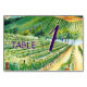 Watercolor painting of the soft green rolling hills full of grapes vines at a country vineyard. Words note "Table 1" but can be personalised with your own words and messages. Create your own unique one-of-a-kind table card design by customising these template red wine beach art table cards for your wedding, reception, or other personal event information.