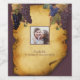 Vineyard Wedding, Rustic paper background with curled and torn edges on a deep burgundy background. Pretty purple, and blue grape vine accents and a frame for your favourite photo.