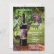An elegant wine tasting party invitation featuring a wine bottle, grapes and wine glass in a vineyard setting. Beautiful to promote a wine tasting event or for a celebration.