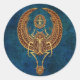 Winged Egyptian Scarab Beetle with Ankh - blue Classic Round Sticker