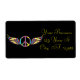 Classic hippie style round peace symbol with feathered bird wings to customise, personalise by changing to your name