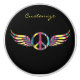 Classic hippie style round peace symbol with feathered bird wings to customise, personalise by changing to your name