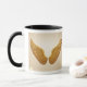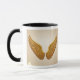 A simple, golden-winged design symbolising freedom and transcendence, set against a light dotted background, evoking elevation and the pursuit of limitless potential. "Original Image was generated by Meta AI. AI generated artwork. Licensed under CC BY-SA 4.0."
