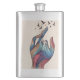 Elegantly surreal. This classic flask wraps a peaceful hand transforming into majestic mountain peaks with birds soaring into freedom. A perfect companion for soulful sips, thoughtful gifting, or moments of calm on the go. For the ones who carry meaning.
