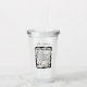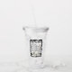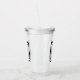 This acrylic drink tumbler with straw and lid has a white cat on top of the keys of a piano and is winking inside a wavy black frame with white dots and bars of black music notes. Customise your text with the template on the front and back.