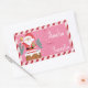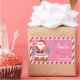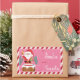 Cute pink and red Christmas gift tag sticker for kids featuring a winking Santa getting ready to go down a chimney . Personalize it with the child's name using the template field . Modify the giver's name as well if you wish .