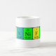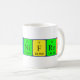 Winnifred spelled out as W I N Ni F Re D (Tungsten Iodine Nitrogen Nickel Fluorine Rhenium Deuterium) on a mug for the scientist in you.