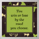 Beautiful brown and green motivational / inspirational butterfly poster. Text says, "You win or lose by the road you choose." Text is fully customisable, so personalise with your own favourite verse or saying.