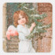 Merrily celebrate the Christmas Season with religious but non-denominational Saints_Aplenty stickers featuring an adorable auburn-haired angel delivering an undecorated evergreen tree to a Church! As a light snow falls, her small wings aflutter, the angel pauses as she ascends the Church's stone steps barefooted to flash the viewer a warm Yuletide smile. This charming antique image is a detail from a late 19th-early 20th-century pre-1907 undivided back postcard, original publisher unknown, printed in Germany in chromolithography, from the designer’s private collection. She’s an angel sure to charm your mail's recipient(s) with her winsome ways! + Image works best on square, round, and heart stickers.