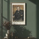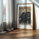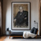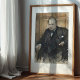Capture the commanding presence of Sir Winston Churchill with this evocative pastel-style portrait. Standing resolute against a wood-paneled backdrop, the legendary Prime Minister is depicted in his signature dark suit and bow tie, with a steady hand resting on his hip. The artwork uses bold, expressive strokes to highlight his steely gaze and determination, embodying the strength of British leadership during World War II. A powerful tribute to history, perfect for an office, library, or study.