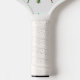 The color is black, very clean and sharp looking with custom lettering. He loves it! White lettering on a black racquet, looks perfect and clean. Classy.