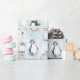 Featuring watercolor polar bears, penguins, arctic foxes, snowy owls, and seals wearing cozy winter hats, this soft blue pattern is perfect for Christmas, winter birthdays, baby showers, and holiday gifting.