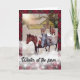 winter at the farm blank folding card red plaid and snow featuring 4 horses in the snow with sun beam