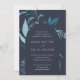 Our Winter Azure wedding invitation surrounds your wedding day details with an arch of vibrant watercolor foliage. A modern yet organic choice for winter or spring weddings featuring intricately painted botanical elements. Colorway: Winter Azure, a medley of frozen blues on a navy background.