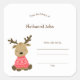 Sweet little neutral gender baby deer wearing a knitted red sweater on a library bookplate sticker. Would be great for a Winter themed baby shower or gifts at Christmas for children.