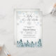 Celebrate the joy of a new arrival with this elegant winter baby shower invitation featuring snowflakes and a forest of snow-covered evergreen trees. The design blends whimsical charm with timeless sophistication, highlighted by stylish cursive and serif fonts. Perfect for seasonal gatherings, this invitation sets the tone for a cosy celebration while ensuring your event details shine. Ideal for parents-to-be who love winter themes, its a beautiful way to invite loved ones to share in the excitement.