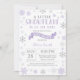 Winter Baby Shower invitation. Purple Snowflake. Girl Baby Shower Invitation. Winter Holiday Baby Shower Invite. Purple and Grey Silver Snowflakes. White Background. For further customisation, please click the "Customise it" button and use our design tool to modify this template.