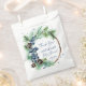 Winter baby shower editable thank you favour bags, watercolor dusty blue winter berries on snowy pine branches snowflakes thank you favour bags modern casual font