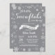 Winter Baby Shower invitation. White and Grey Snowflake. Boy or Girl Baby Shower Invitation. Winter Holiday Baby Shower Invite. White Snowflakes. Grey Background. For further customisation, please click the "Customise it" button and use our design tool to modify this template.