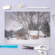 Winter Barn Snuggled in Snow with Animals, a Fence at the Edge of a Forest tissue paper