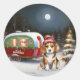 Winter Beagle Caravan Christmas Adventure Classic Round Sticker
