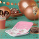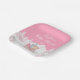 This cute and fun watercolor baby shower plate features an adorable bear in a pink sleigh surrounded by snow, mountains and pine trees. The text combines handwritten script and sans serif fonts for a stylish and modern look. Beautiful faux glitter flower arrangements and silver confetti add a festive touch. This is perfect for a Christmas or winter baby shower.