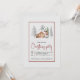 Winter bear and trees Happy holidays Christmas party Invitation that features a racoon in winter clothes, a house and snowfall.
