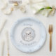 Winter baby bear-themed paper plates in the soft blue, white and grey colours with a cute polar bear and snowflakes for boy's winter 1st or any Birthday party. Easily personalise the text. - Kate Eden Art